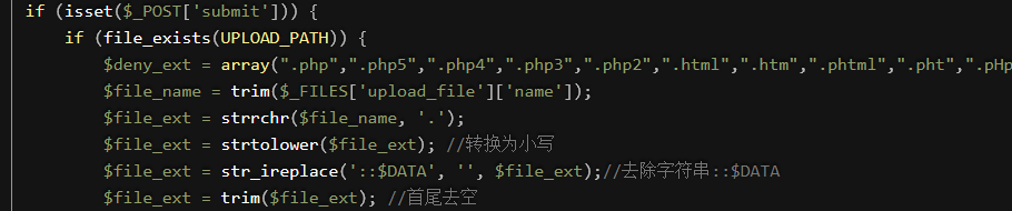 $file_ext = str_ireplace('::$DATA', '', $file_ext);//去除字符串::$DATA |